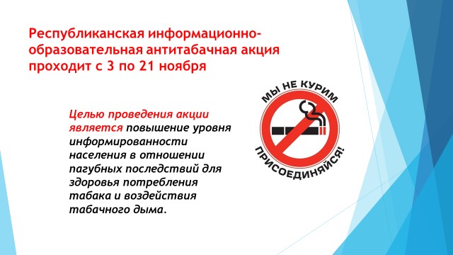 С 03 по 21 ноября 2025 года проходит республиканская информационно-образовательная антитабачная акция.